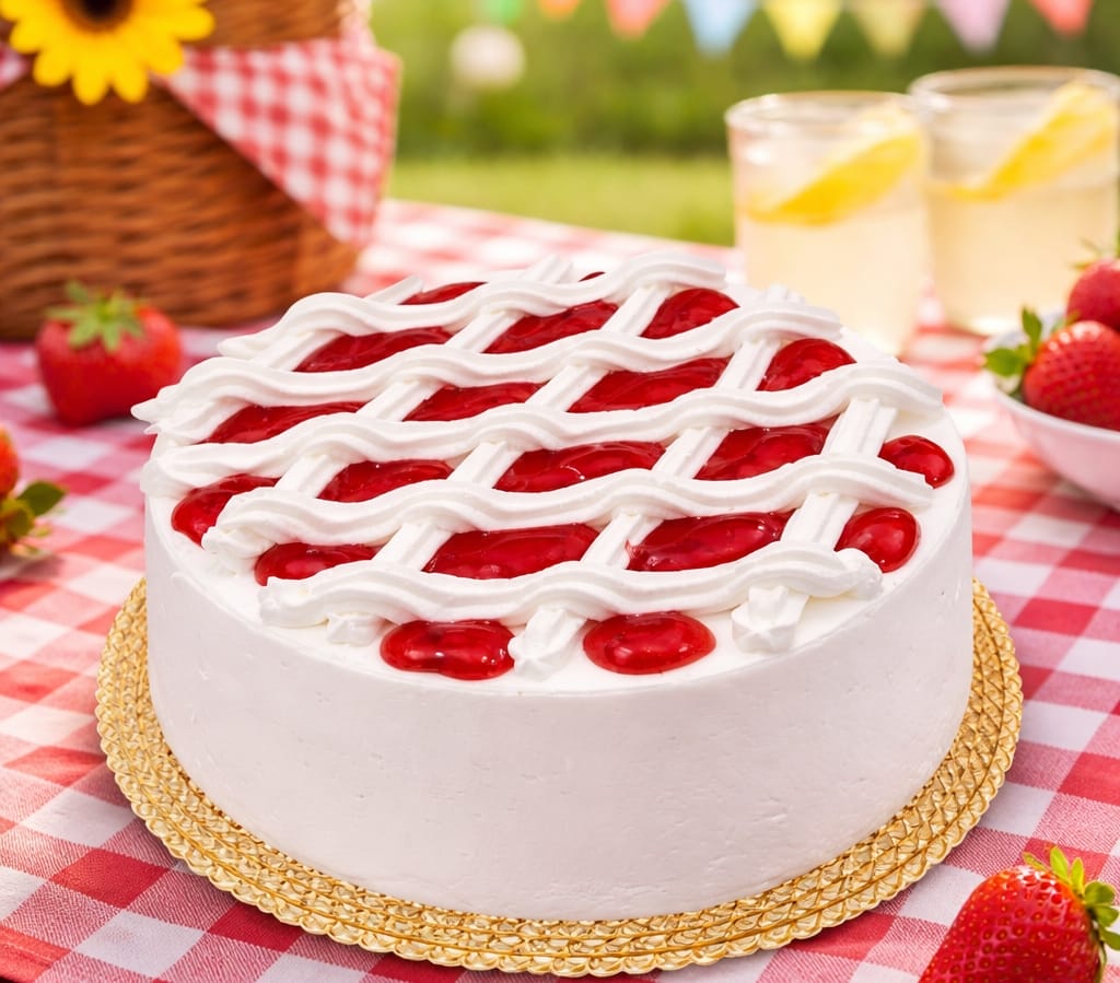 Retail Bolo Morango & Chantilly Massa pão de ló, recheio compota de morango, cobertura e decoração chantilly e morango Ver mais
